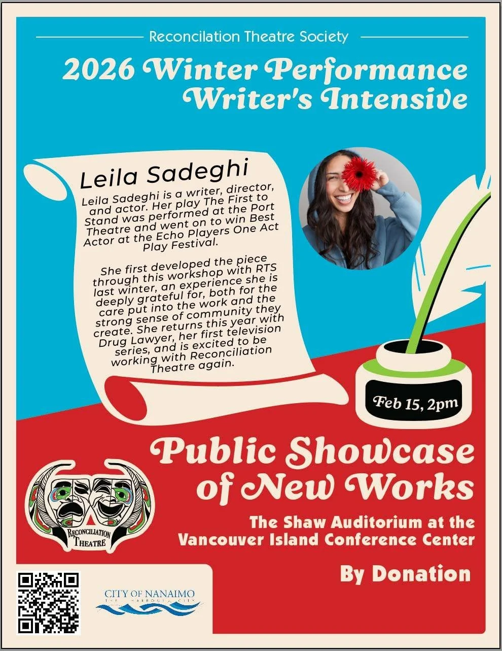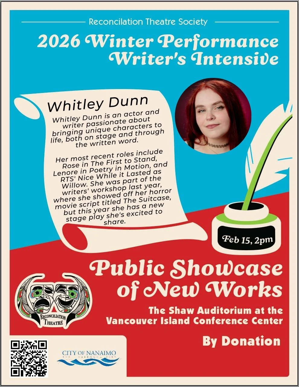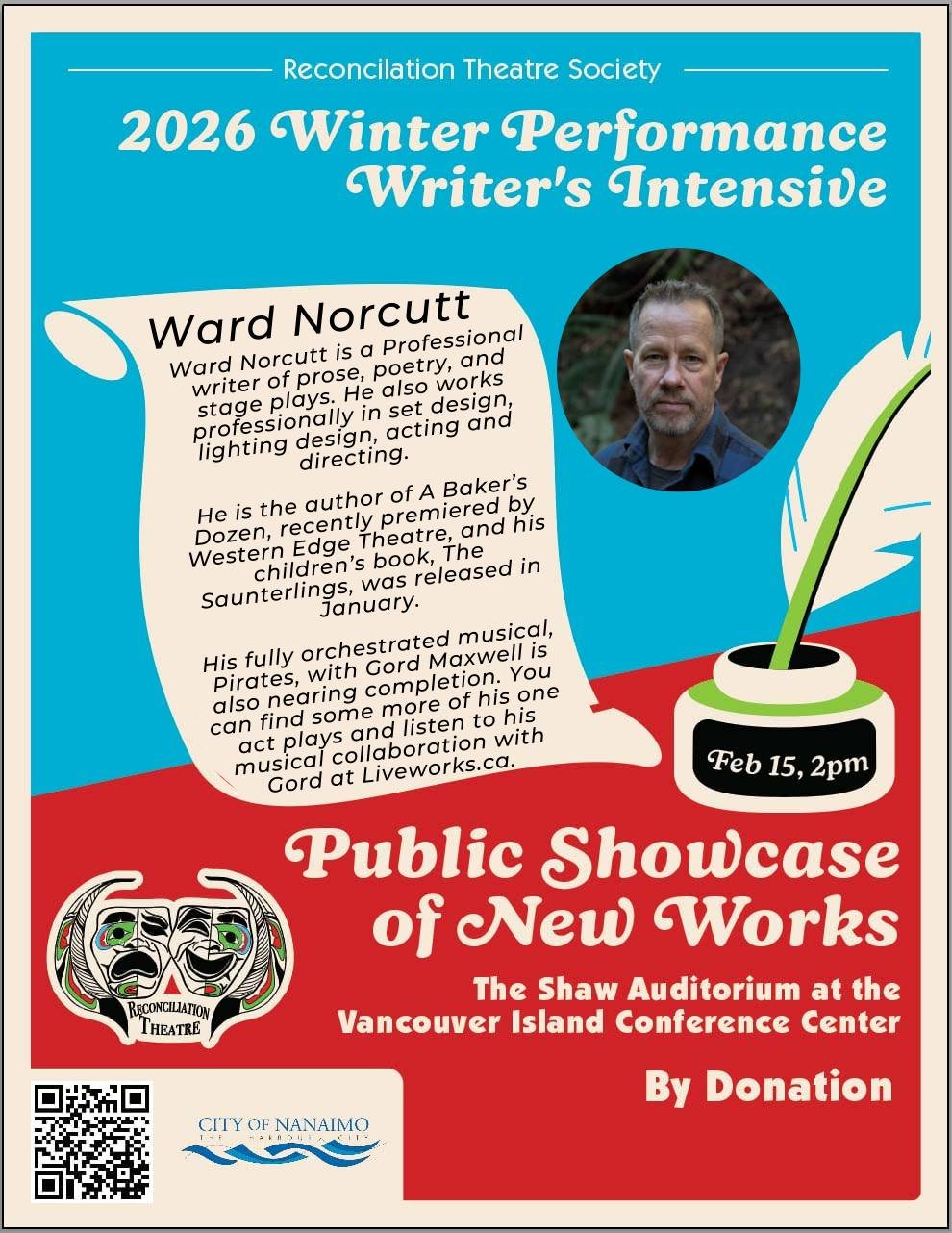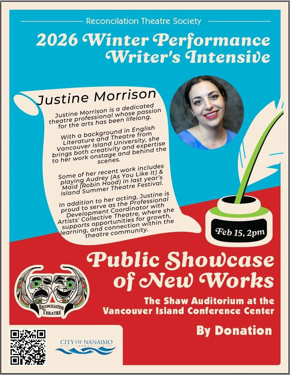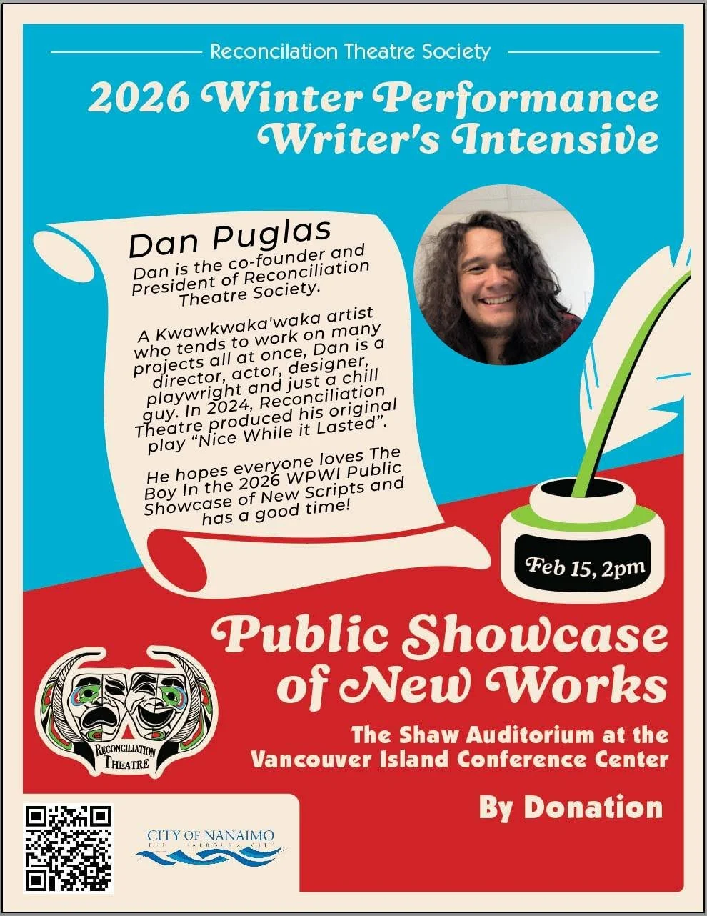 the talented artists who were part of pulling off this exciting weekend. When not being the Artistic Director of Reconciliation Theatre, he is a devoted husband and father of two sons and a trustee on Nanaimo Ladysmith Public School board.